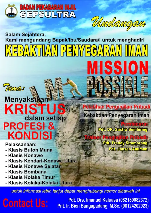 - Klasis Buton Muna, 7 Maret 2019 di Gedung Gereja GEPSULTRA Jemaat Lelemangura Baubau, Jl. Budi Utomo no. 19 (samping lapangan tembak)